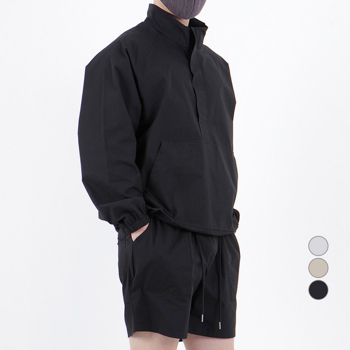 일루소 남성용 오버핏 아노락 바람막이 반집업 자켓 반바지 세트