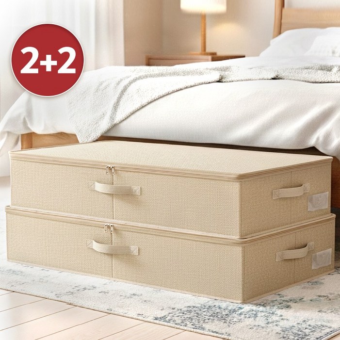 하루살이 고급 린넨 침대밑 수납정리함 틈새 언더베드 패브릭 리빙박스, 베이지, 4개