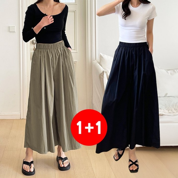 마쿠쿠 11 세트 여성 치마바지 빅사이즈 밴딩 플레어 와이드 팬츠 롱 스커트