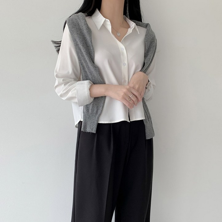검증된원단 구김적은 링클프리 기본 크롭 긴팔 블라우스 P0007816